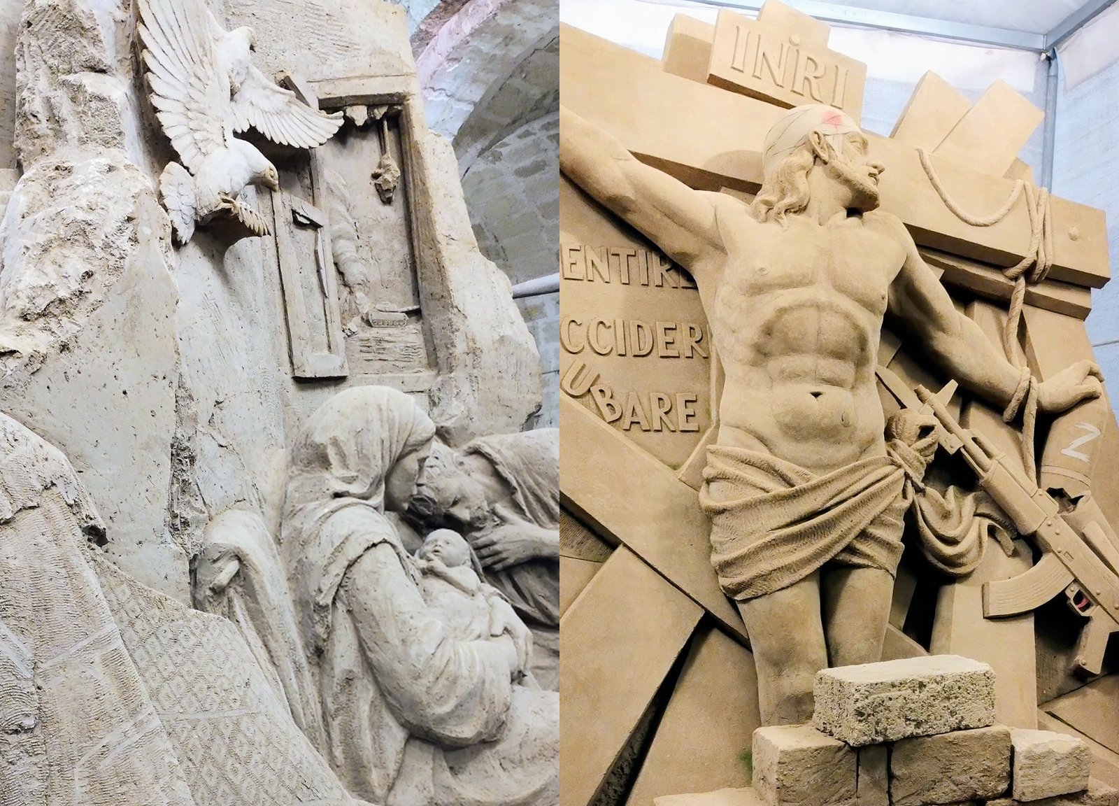 P.s. A corredo alcune immagini della “Natività di sabbia” di Scorrano con a tema il riarmo in corso e i conseguenti massacri.