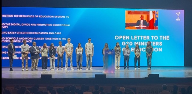 Un momento particolarmente significativo ha visto protagonista la studentessa Dalila Carrisi (5AL), scelta per salire sul palco del Teatro San Carlo e leggere, a nome degli studenti italiani, la lettera indirizzata al Ministro Valditara per il G20. Un gesto simbolico e potente, seguito in diretta dal Ministro stesso collegato all’evento.