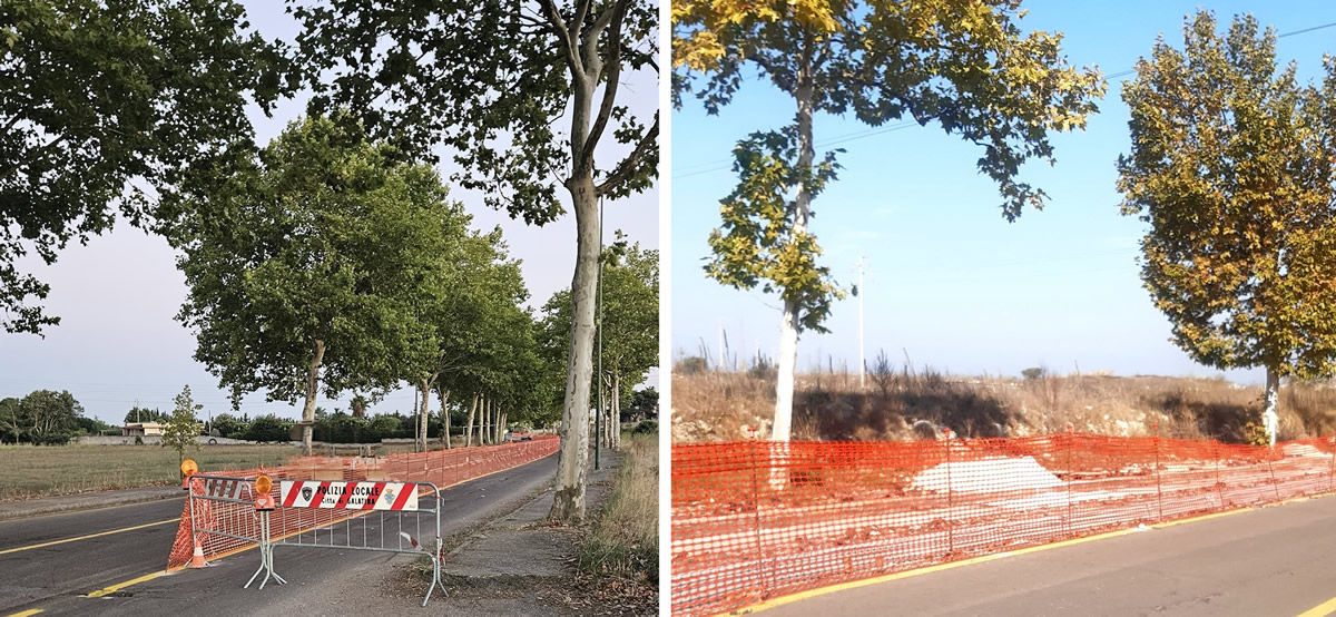 Mentre si procede di buona lena alla mattanza degli alberi monumentali urbani, tipo gli eucalipti di via Aradeo, dicono per farci arrivare prima al cimitero nohano (mo’ non chiedetemi se in senso letterale o in senso letterario), e in zona Trozza ci accingiamo a contemplare la pavimentazione con mattonelle in cemento vibrato chiaro unitamente alla perimetrazione con cordoli nello stesso materiale dei superstiti pini [per rispettare la famosa “visione di città” la giunta Mc Donald’s ne ha abbattuti un paio anche qui, ndr.], cordoli dicevo così rasenti ai tronchi che quella villetta verrà presto ribattezzata Strozza, onde per cui fra qualche tempo le forze della natura solleveranno - facendoli scoppulare all’unisono - massetto mattoni cigli asfalto e tutto il cucuzzaro nei dintorni; insomma, mentre accade tutto questo sine requie, cioè mentre si crea il deserto urbano senz’altro con il parere positivo dell’“agronomo” corroborato dalla vulgata secondo la quale gli alberi “sporcano, bruciano, cadono, ostacolano, sono fuori asse [sic] e intralciano il traffico [ri-sic]”, nel recente consiglio comunale del 23 settembre scorso s’è presentata quella genialata che è il parco periurbano: un polmone verde proprio, signora mia, da collegare con gli altri “punti strategici” cittadini non si sa precisamente se con piste ciclabili o con ben altri tipi di piste.