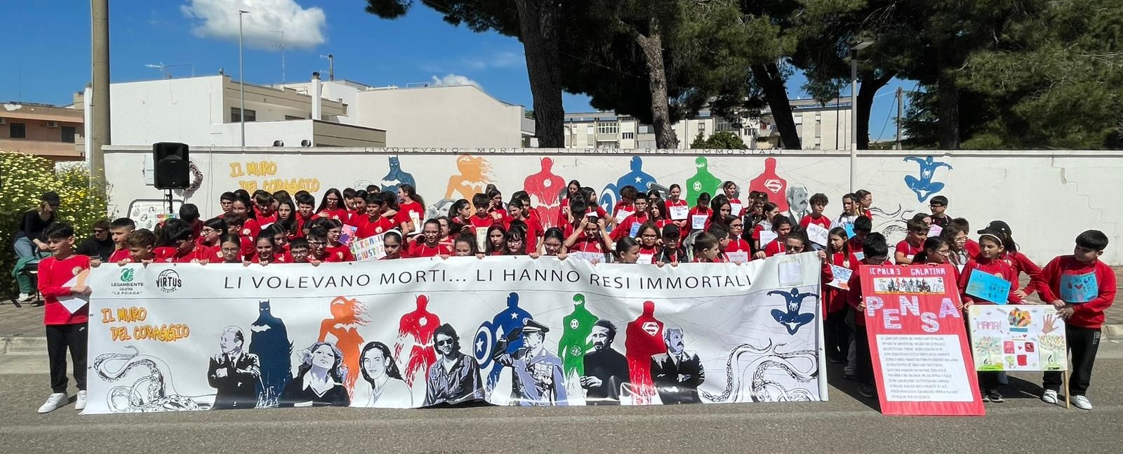 L’ultima tappa si è svolta presso il “Muro del Coraggio”, luogo simbolo di memoria, impegno e speranza, dove gli alunni sono giunti al termine di una marcia della legalità vissuta con entusiasmo, partecipazione e profonda consapevolezza .
