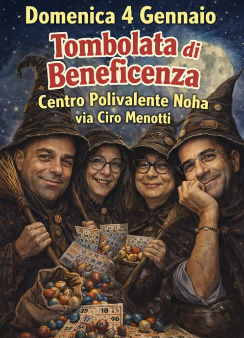 • 6 Gennaio, ore 17.00 - Tombolata dell' Epifania! Un pomeriggio di comunità e divertimento per salutare le feste (per un'adeguata organizzazione del gioco, per la tombolatala la prenotazione è obbligatoria).