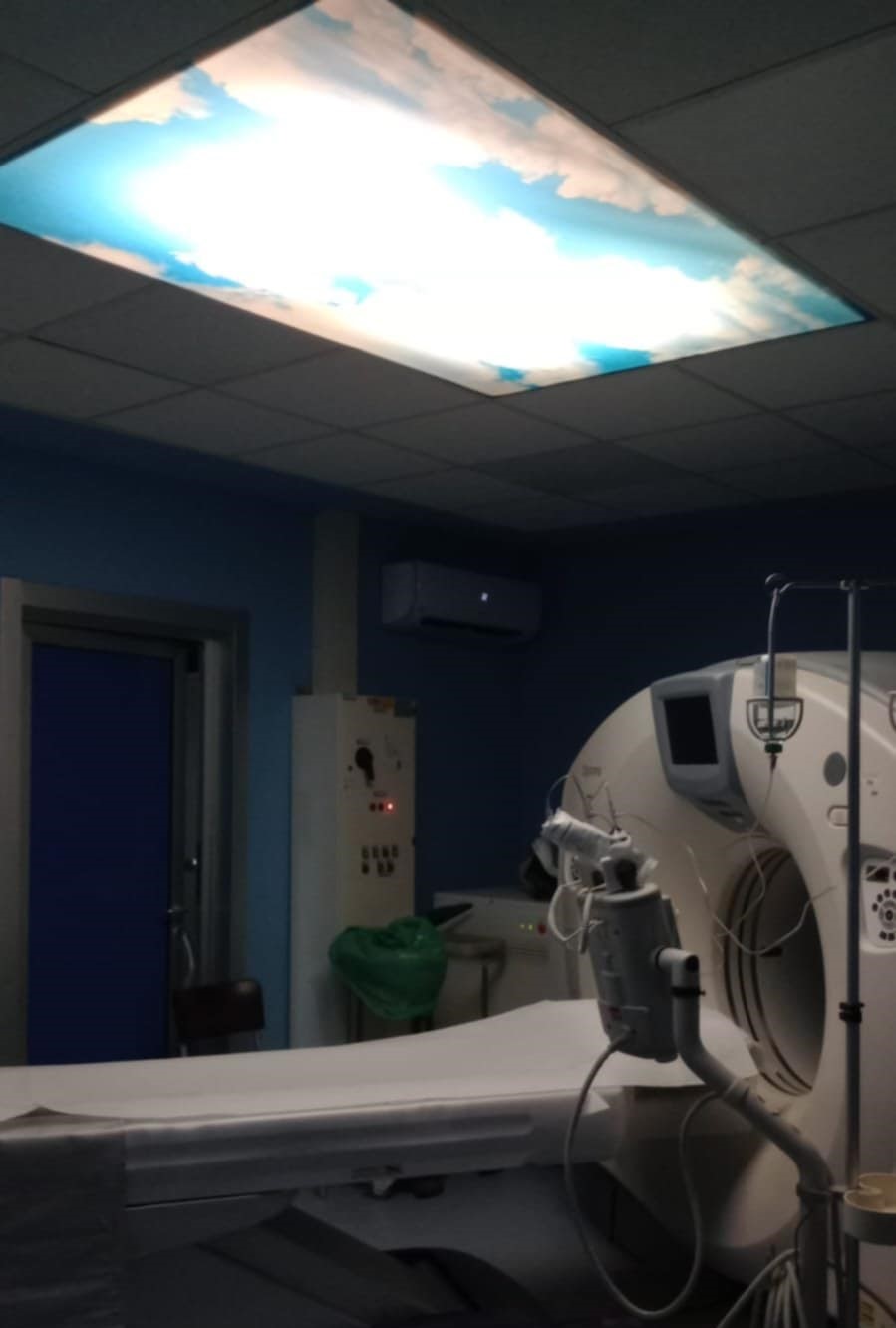 Utilizzare immagini di cieli e nuvole nel soffitto della sala TAC è una strategia di "distrazione terapeutica" estremamente efficace per ridurre l'ansia, la claustrofobia e lo stress nei pazienti. Trasformare un ambiente sterile in un'esperienza visiva rilassante può, inoltre, migliorare significativamente la percezione del dolore e la collaborazione del paziente durante l'esame.