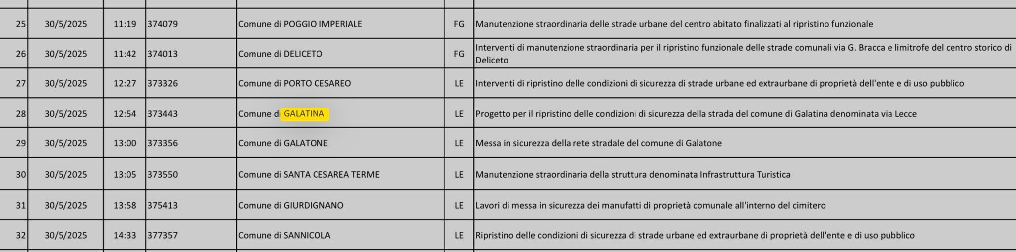 Come evidenziato dalla pubblicazione della D.G.R. n. 661 del 21.05.2025 e del successivo Atto Dirigenziale n. 355 del 23/05/2025, il comune di Galatina è risultato beneficiario di un finanziamento di circa 300.000 euro per la sistemazione del manto stradale di Via Lecce nel tratto compreso tra l’ingresso della Città e la svolta all’altezza dell’hotel Hermitage. Ancora un finanziamento intercettato dalla nostra Amministrazione che si lega in maniera organica agli altri progetti già deliberati che interessano l’area Nord di Galatina che, in linea con la nostra visione, continuerà ad essere sempre più centrale e strategica. L’ingresso principale della nostra Città finalmente avrà la dignità e la sicurezza che merita. Grazie all’ufficio tecnico ed alla Direzione strategica e Lavori Pubblici per il costante impegno nonostante l’elevatissima mole di lavoro. Complimenti al Sindaco Fabio Vergine ed all’Assessore Peppino Spoti per il lavoro quotidiano, svolto assieme a tutta l’Amministrazione comunale, finalizzato a rendere concreta quell’idea di Città che vede Galatina ed il suo intero territorio sempre più riqualificato, centrale ed attrattivo. Pierluigi Mandorino Consigliere comunale Avanti insieme