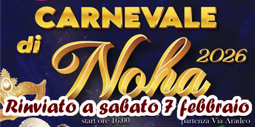Causa maltempo, la sfilata dei carri allegorici e dei gruppi mascherati del Carnevale di Noha è stata rinviata a sabato prossimo, 7 febbraio 2026, a partire dalle 16.