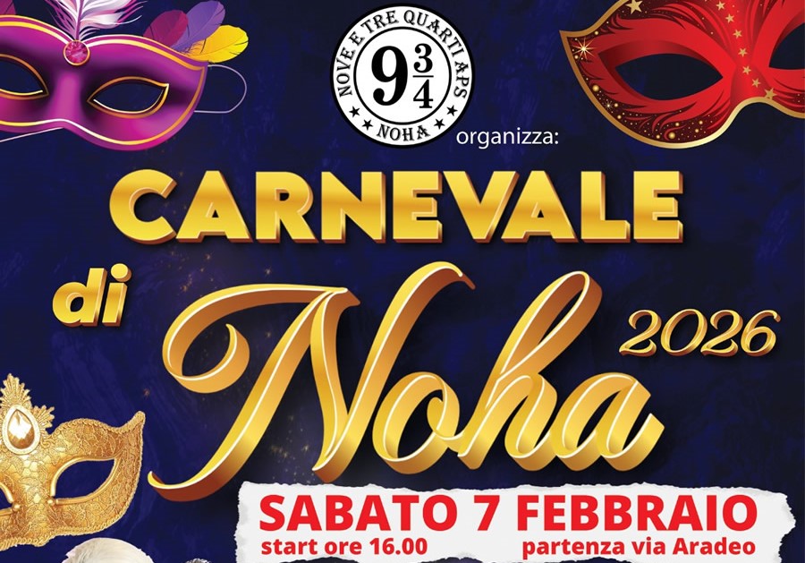 Il maltempo ha solo fatto slittare la festa, ma non ha spento l’entusiasmo. Dopo il rinvio forzato della scorsa domenica, sabato 7 febbraio Noha è pronta a riprendersi la scena e a dare ufficialmente il via ai festeggiamenti del periodo più colorato dell’anno. Protagonisti della manifestazione saranno 6 carri allegorici e 5 gruppi mascherati, accompagnati dalla musica di Radio Orizzonti Activity con i DJ Patuano, Ippolito e Riki Pellegrino. Sul palco l’animazione sarà affidata a Tekemaya e Zigo, mentre il gran finale vedrà in consolle Danilo Seclì e Luigi Abaterusso per trasformare la piazza in un dancefloor.